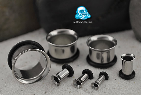 Parylene-coated silicone earskins in white, 4ga. $14.00/pair @ BAF